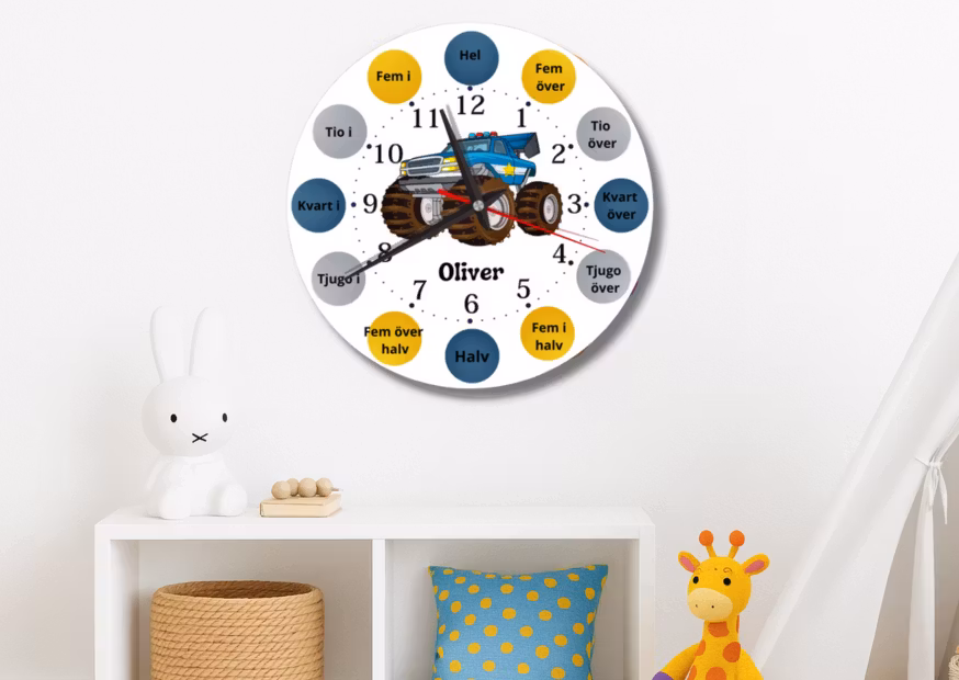Upptäck magin i att lära sig klockan med vår Monstertruck Väggklocka – en perfekt kombination av lärande och lekfull design som kommer att förvandla varje barnrum till en inspirerande plats.