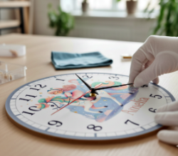 Alla våra barnklockor tillverkas från grunden i vår lilla familjeverkstad i Hällefors, Sverige. Vi skär själva ut varje urtavla ur miljövänlig MDF, trycker motiven för hand och monterar alla delar själva – med omsorg i varje steg.Till skillnad från massproducerade klockor från stora kedjor eller utlandet, erbjuder vi: