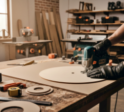 Vi gör allt själva: från att skära MDF-skivorna till att montera den tysta mekanismen till att paketera beställningen. Vi köper ingenting i förväg, vi tillverkar allt i vår verkstad.