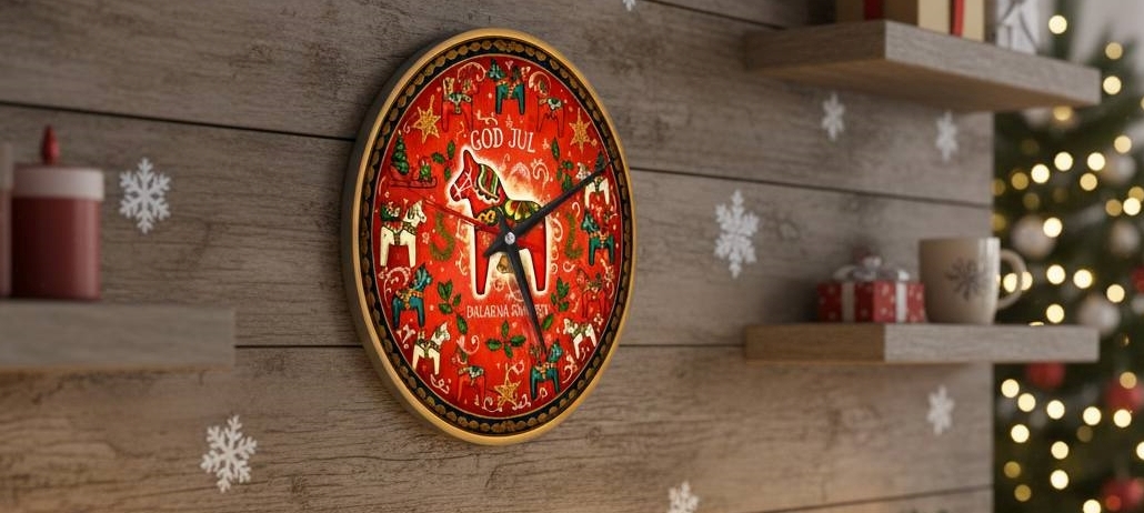 Gammaldags Jul- Dalahäst - Tystgående väggklocka